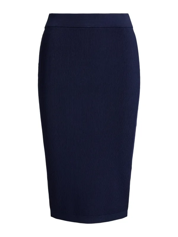 Design: Elastische taille/zoom, Rechte zoom, Geribbeld gebreid; Materiaal: Knitwear; Motief: Effen; Rokvorm: Kokerrok; Extra's: Met textuur, Voelt zacht aan; Lengte: Knielengte; Pasvorm: Slanke pasvorm