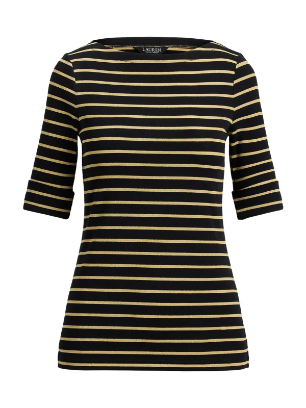 T-shirt voor dames van Lauren Ralph Lauren;Katoenmix met stretchgehalte;Regular fit;Model 'JUDY';Boothals;Mouwen met omslag;Ruglengte bij maat S: 59 cm