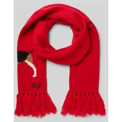 Damessjaal van Lauren Ralph Lauren;Wolmix;Rechthoekige pasvorm;Model 'Dog';Gestikt logo;Motiefstitching;Franjes aan de zoom;Breedte bij maat 1: 25 cm;Lengte bij maat 1: 173 cm