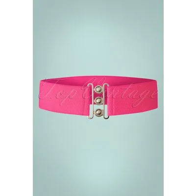 ''Show your waist!'' Deze tailleriem is gemaakt van breed felroze elastiek met een zilverkleurige gesp. Geweldig in combinatie met onze swing jurken om je taille te accentueren voor een prachtig silhouet. * Elastiek * Zilverkleurige gesp