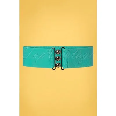 Deze 50s Lauren Vintage Stretch Belt in Light Teal is dé ideale accessoire om iedere vintage outfit helemaal mee af te maken! Gemaakt van breed elastiek in licht tealblauw met een zilverkleurige gesp die sluit in de taille. Draag hem in combinatie met onze swing jurken om je taille te accentueren voor een prachtig silhouet! * Elastiek * Zilverkleurige gesp