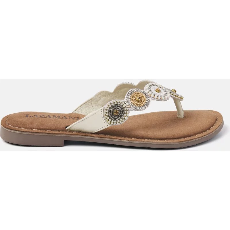 - Bij bol.com kun je Lazamani Luna Leren Dames Slippers OffWhite kopen voor slechts €52,94 , dat is 34% goedkoper dan bij ABOUT YOU (€79,95).