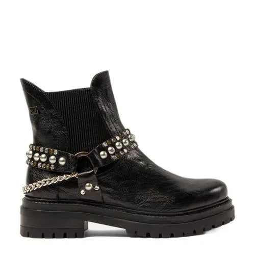 Deze Lazamani Chelsea boots zijn gemaakt van leer met een textielen voering. De profielzool en elastische inzet zorgen voor een prettige instap. Met sierbandjes en studs geef je jouw outfit een stoere look.