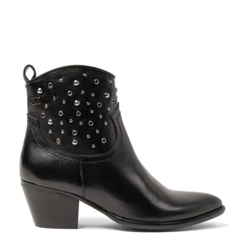 Deze enkellaars van Lazamani is gemaakt van leer. De voering is van textiel. De western hak en studs geven je outfit een stoere uitstraling, je loopt hiermee makkelijk de hele dag.