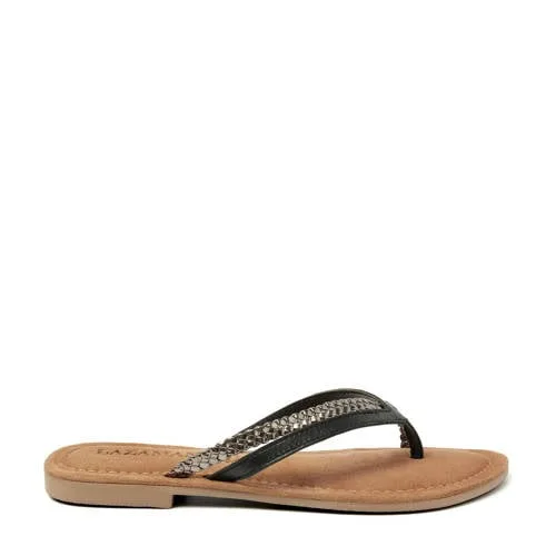 Lazamani leren teenslippers zwart Prijzen