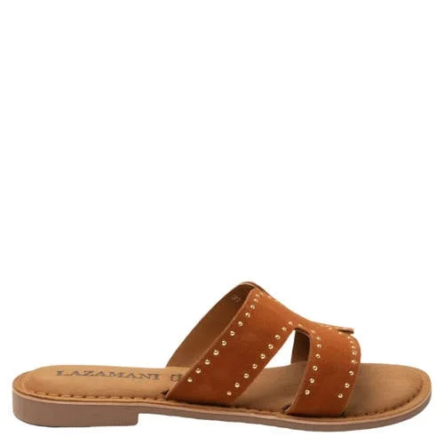 Lazamani Lina suède slippers met studs cognac