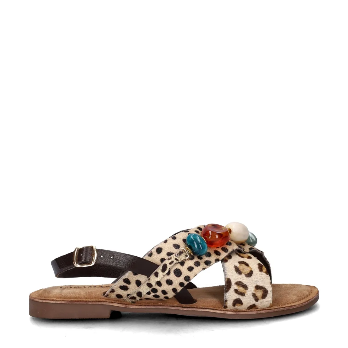 Lazamani Marika X dames sandaal Ga voor deze opvallende sandaal van Lazamani om je zomerse look compleet te maken. Uitgevoerd in ponyhair met trendy panter print met eyecachting gems. de hielabdn kan versteld worden met de gesp. Voorzien van een suède voetbed die een goede temperatuurregulering biedt. dankzij het Lazafeel-voetbed ervaar je bovendien comfortabele demping tijdens het lopen. Afgewerkt met een rubberen loopzool.