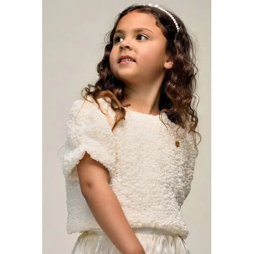 Deze Le Chic meisjes top is een comfortabele basic met een verfijnde uitstraling. De top heeft een ronde hals en korte rechte mouwen, waardoor deze prettig draagt op warme dagen of onder een vest of jasje. De effen kleur en subtiele textuur in de stof geven een rustig en verzorgd beeld, passend bij zowel alledaagse als meer geklede momenten.Verzorgde details voor dagelijks gemak Gemaakt van 80% polyester, 17% polyamide en 3% elastaan voor een soepele pasvorm Korte rechte mouwen die de schouders luchtig bedekken Ronde hals die comfortabel aansluit bij de halslijn Effen kleur die makkelijk combineert met verschillende onderstukken Geen sluiting voor snel en eenvoudig aan en uit trekken Achterkant met lage uitsnede voor een speels effect Stof met textuur voor een stijlvolle, rustige structuurGeschikt voor schooldag en vrije tijdMet de zachte stretch in de stof beweegt de top prettig mee tijdens een schooldag, een feestje of een middag buitenspelen. De effen kleur maakt het eenvoudig om de top te combineren met rokken, shorts of een nette broek.De signatuur van Le ChicLe Chic richt zich op kleding voor meisjes met aandacht voor pasvorm, draagcomfort en doordachte details. Het merk combineert praktische ontwerpen met een verzorgde stijl, zodat elke outfit er netjes en eigentijds uitziet.Een veelzijdige top die moeiteloos meebeweegt met drukke dagen en bijzondere momenten.
