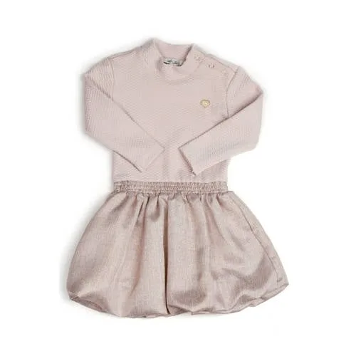 Deze Le Chic jurk heeft lange rechte mouwen en een ronde hals. De jurk sluit met een drukknoop. De rok is gemaakt van 100 procent polyester en heeft een glimmende textuur.