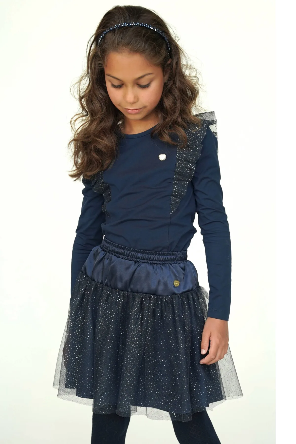 Deze longsleeve van Le Chic heeft rechte mouwen en een ronde hals. De NUFFY stijl geeft je outfit een zachte uitstraling door de ruches en tule details. Gemaakt van stretchkatoen voor extra bewegingsvrijheid.