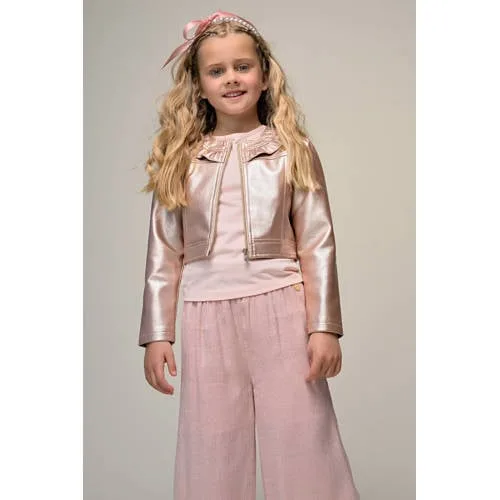 Dit Le Chic meisjes T shirt roze is een comfortabele basic met een verzorgde uitstraling. De effen roze kleur vormt een rustige basis, terwijl de pofmouwen en de subtiele contrastbies het T shirt een speels accent geven. De ronde hals sluit prettig aan en maakt het eenvoudig om het T shirt aan en uit te trekken.Verzorgde details voor elke dag Effen roze kleur die goed combineert met verschillende onderstukken Korte pofmouwen voor een zachte, meisjesachtige uitstraling Ronde hals die comfortabel rond de nek valt Gemaakt van 95 procent katoen en 5 procent elastaan voor een soepele pasvorm Contrastbies als stijlvol detail langs de afwerking Geen zakken voor een rustige, gladde voorkant Eén T shirt in de verpakkingFijn voor school en vrije momentenMet de luchtige stof en korte mouwen is dit T shirt prettig op warmere dagen. Het kan onder een vest gedragen worden bij frissere temperaturen en blijft dankzij het elastaan goed in model tijdens het spelen en bewegen.Le Chic als vertrouwde keuzeLe Chic richt zich op kinderkleding met aandacht voor pasvorm en doordachte details. Het merk combineert draagcomfort met een verzorgde stijl, zodat kinderen zich vrij kunnen bewegen in kleding die er netjes uitziet.Een zachte basic die elke dag weer klaarhangt voor een comfortabele start.