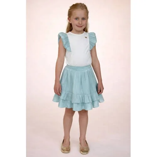 Fris, speels en klaar voor elke zomerdag, dit Le Chic meisjes T-shirt Noppy is een praktische basic met een verfijnd accent. Het mouwloze model in wit met lichtblauw oogt licht en luchtig, terwijl de meerkleurige print en ruches zorgen voor een kleurrijke uitstraling. De ronde hals maakt het shirt makkelijk te combineren met favoriete rokjes, shorts of jeans.Fijne details voor elke dag Mouwloos T-shirt voor meisjes, ideaal voor warme dagen of onder een vest Kleurcombinatie wit/lichtblauw met meerkleurige print voor een frisse look Ronde hals die comfortabel aansluit bij de hals Ruches als speels detail bij de afwerking Gemaakt van 95% katoen en 5% elastaan, wat zorgt voor een zachte stof met lichte stretch Geen zakken voor een rustige, nette uitstraling Eén stuk per verpakkingComfortabel en makkelijk te combinerenDe soepele katoenmix voelt zacht aan op de huid en beweegt gemakkelijk mee. Handig voor spelen, schooldagen en uitstapjes. Door de rustige basis en subtiele details past dit T-shirt eenvoudig bij verschillende stijlen en kleuren in de kinderkledingkast.Le Chic voor kinderkleding met aandachtLe Chic staat bekend om meisjeskleding met aandacht voor detail. De ontwerpen combineren draagcomfort met nette afwerkingen, waardoor elk item geschikt is voor zowel alledaagse momenten als iets specialere gelegenheden.Een luchtig T-shirt dat moeiteloos meegaat in het dagelijks ritme en er elke keer weer netjes uitziet.