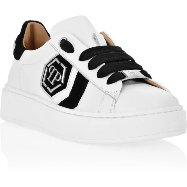 Deze Plein Kids lo-top sneakers combineren alledaags draaggemak met verfijnde luxe. Ze zijn volledig gemaakt van kalfsleer en bieden duurzaamheid, comfort en de kenmerkende stoerheid van Plein. Bovenwerk van kalfsleer voor een hoogwaardige, duurzame afwerking Kalfsleren voering en binnenzool zorgen voor comfort en ademend vermogen Lo-top ontwerp voor een veelzijdige, gemakkelijke styling Stevige buitenzool zorgt voor grip en stabiliteit Een luxe kindersneaker die praktisch evenwicht combineert met een gedurfd ontwerp