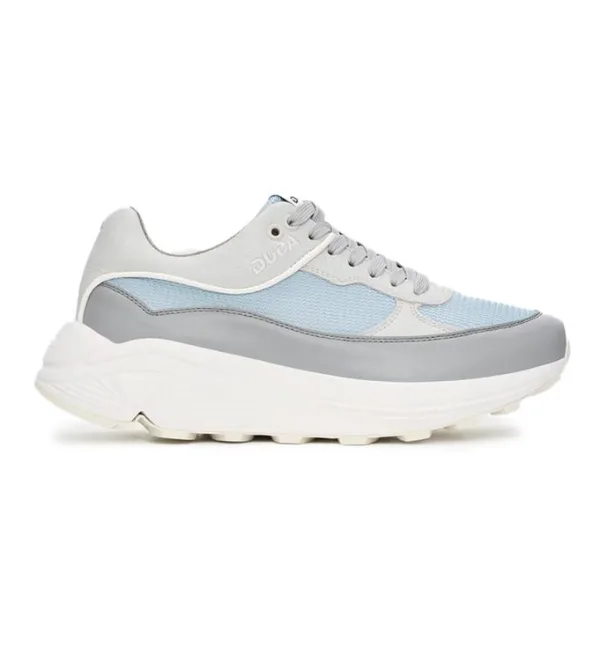 Lichtblauw mesh met grijs leer combi sneaker met unieke afwikkelzool
