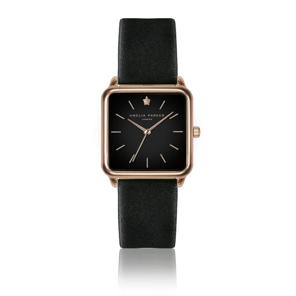 Een klein vierkant gitzwart gezicht met Amelia Parker 's kenmerkende zee tortue juweel in goud rose zorgt voor een heerlijk onbevreesd statement. Dit stuk is geïnspireerd op de zachte lijnen en vormen waar de kustvilla's van Cayman de wilde Caribische zee ontmoeten.Modelnaam: Night Plaza Black Leather Kastmaat mm: 28Kastmateriaal: MetaalsamenstellingKleur kast: Goud rose Kastbeplating: Ion-plating (IP)Armbandmaat mm: 18X16Materiaal band: Echt leerKleur band: ZwartKleur wijzerplaat: Zon zwartGlas: Gehard mineraalglasAchterkant kast: Roestvrij staalWaterbestendigheid: 3 ATM