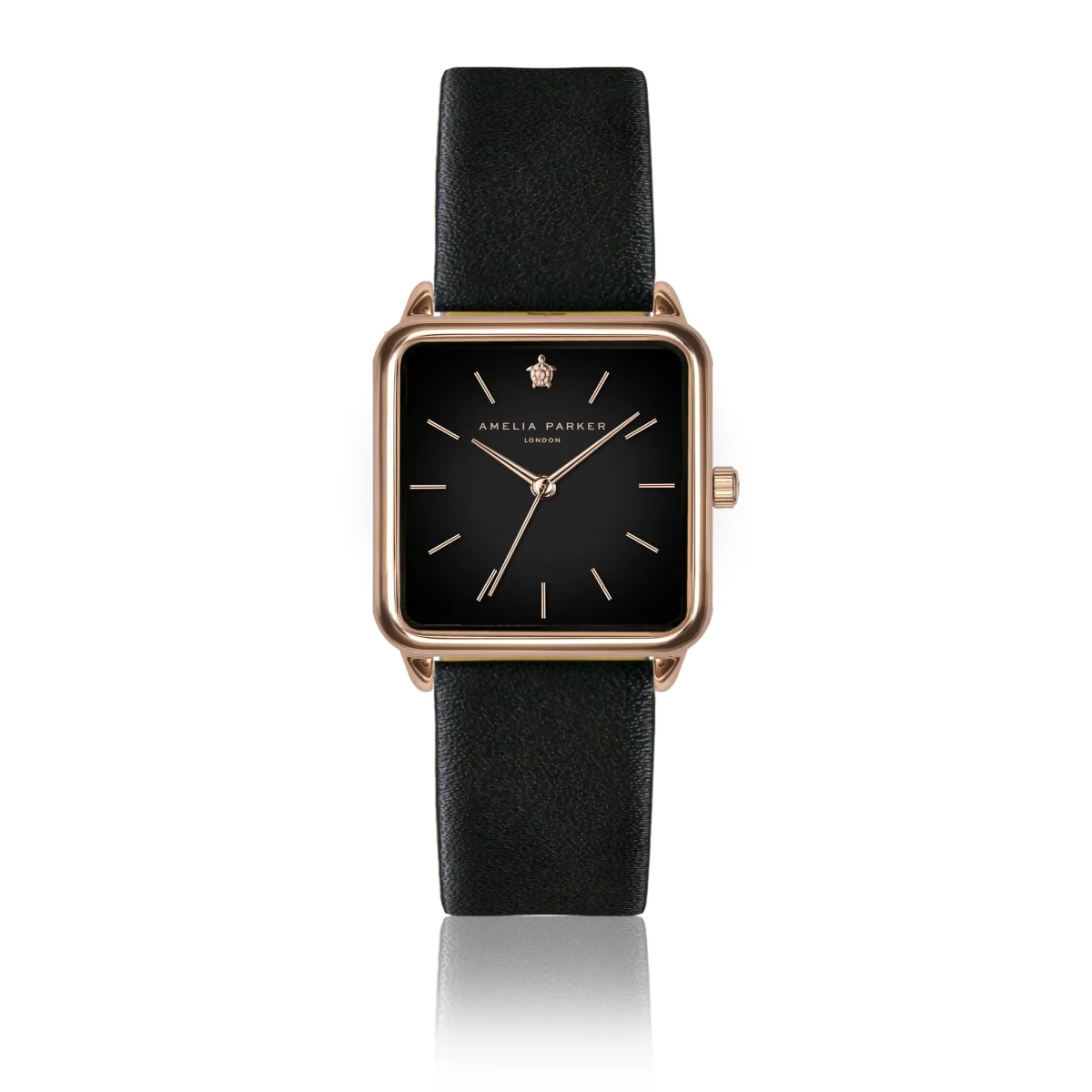 Lederen horloge voor vrouwen Amelia Parker Night Plaza Black Prijzen