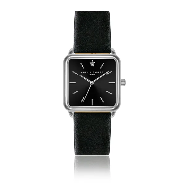 Lederen horloge voor vrouwen Amelia Parker Night Voyage Black Prijzen