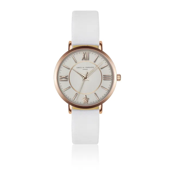 Lederen horloge voor vrouwen Amelia Parker Petite Classique White