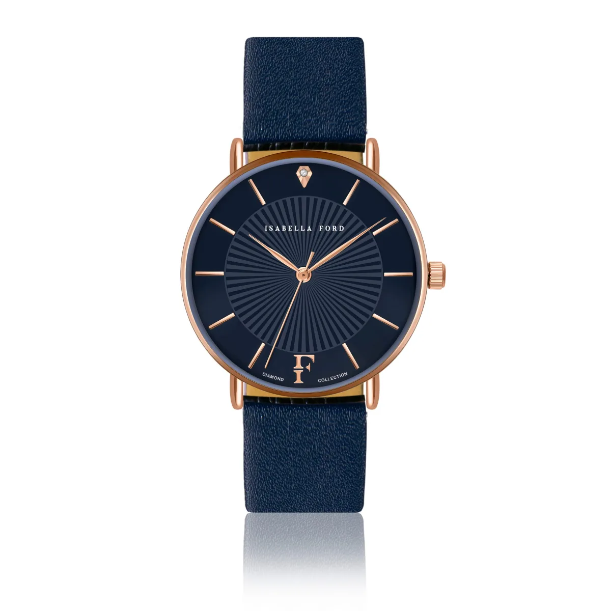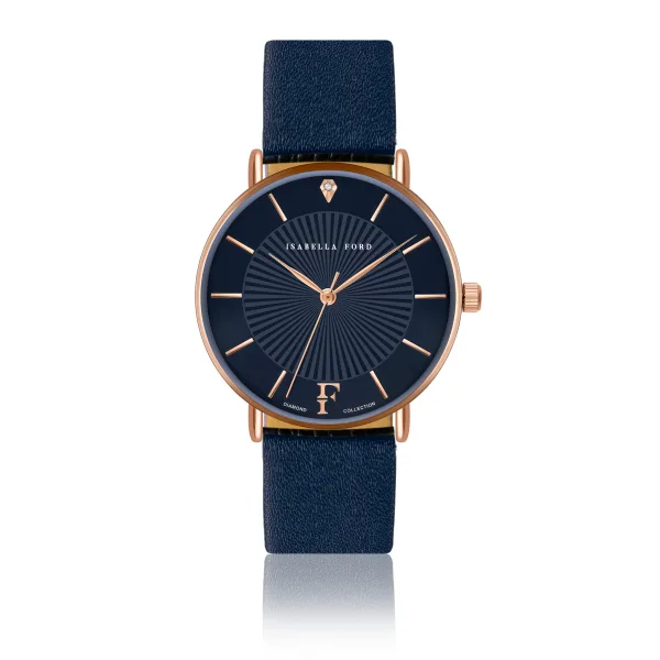 Isabella Ford presenteert een van de drie echte diamanten dag- en nachtklokken, elk met zijn eigen onweerstaanbare look. Met een prachtig geraffineerd ontwerp is Florence gewijd aan slimme vrouwen die houden van de eenvoud van verfijnde, tijdloze luxe.Modelnaam: Florence Blauw Leather Kastmaat mm: 36Kastmateriaal: MetaalsamenstellingKastkleur: Goud rose Case Plating: Ion-plating (IP)Armbandmaat mm: 18X16Armbandmateriaal: Echt leerArmbandkleur: DonkerblauwWijzerplaatkleur: MarineblauwGlas: Gehard Mineraal KristalDiamond Details: Cut: Single; Clarity: I-3; Kleur: Upper crystal;Case back: Roestvrij staalWaterbestendigheid: 3 ATM