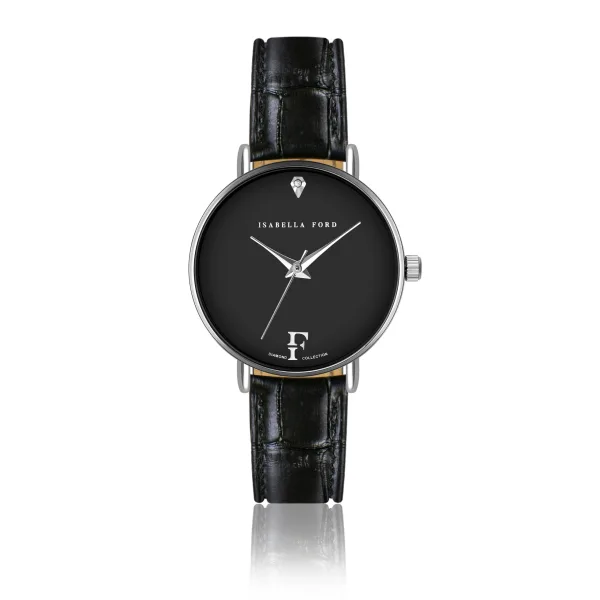 Een van de twee ultra-minimalistische luxe ontwerpen Isabella Ford, Infinity is gewijd aan vrouwen die prijs stellen op ingetogen schoonheid die de tand des tijds doorstaat. De fascinerende combinatie van gitzwart en zilver springt in het oog op deze slanke wijzerplaat waar een enkele echte diamant centraal staat op het twaalfde uur.Modelnaam: Infinity Zwart Leather Kastmaat mm: 32Kastmateriaal: MetaalsamenstellingKastkleur: ZilverKastcoating: Ionisch Plating (IP)Armbandmaat mm: 14X12Armbandmateriaal: Echt LeerArmbandkleur: Zwart KrokodilWijzerplaat Kleur: ZwartGlas: Gehard Mineraal KristalDiamant Details: Cut: Single; Clarity: I-3; Kleur: Upper crystal;Case back: Roestvrij staalWaterbestendigheid: 3 ATM