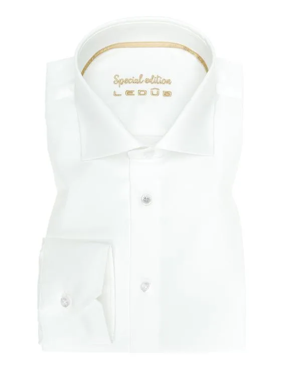 Ledub Dress shirt 0323568-920-350-000Dit Ledub overhemd is je nieuwe favoriet voor elke formele gelegenheid. Met een klassieke kraag en lange mouwen biedt dit witte overhemd een verfijnde uitstraling die nooit uit de mode raakt. Stel je voor hoe het jou past tijdens een elegante dinersessie of een belangrijke bijeenkomst.Gemaakt van 100% katoen, straalt dit item comfort en kwaliteit uit. De stof is ademend en zorgt ervoor dat je je de hele dag fris voelt.Klassieke kraag: Tijdloze elegantie en veelzijdigheid.Lange mouwen: Perfect voor koelere dagen of formele gelegenheden.Wit: Eenvoudig te combineren en altijd stijlvol.Het overhemd is ideaal voor mannen die waarde hechten aan kwaliteit en tijdloze klasse.Het merk LedubLedub staat voor kwaliteit en vakmanschap met een moderne visie. Verkrijgbaar zowel online als in de winkel bij Castelijn Mode Beek, is het merk een begrip bij hen die waarde hechten aan stijlvolle items voor elke gelegenheid.