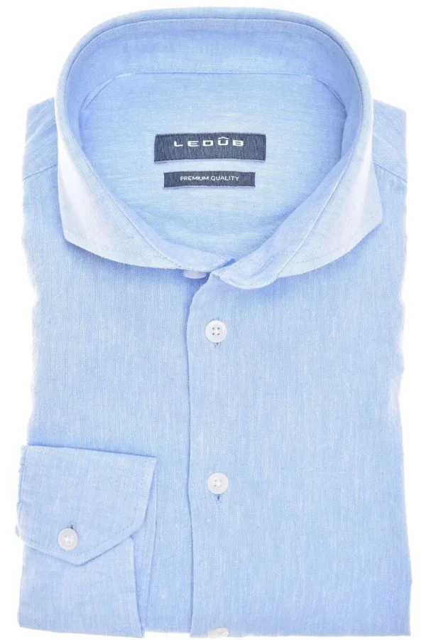 Ledȗb Modern Fit Linnen Overhemd lichtblauw, Effen