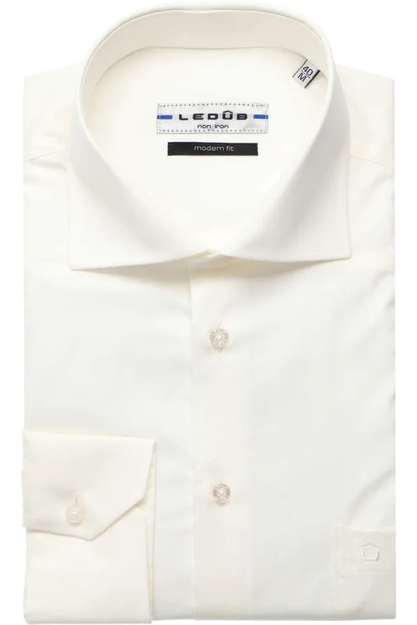 Ledȗb Modern Fit Overhemd ecru, Effen