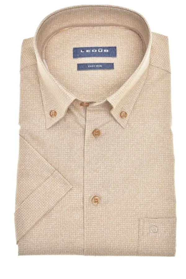 Ledȗb Modern Fit Overhemd Korte mouw bruin