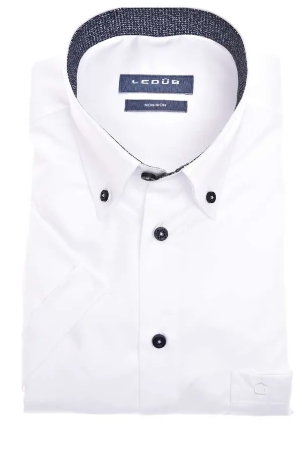 Ledȗb Modern Fit Overhemd Korte mouw wit