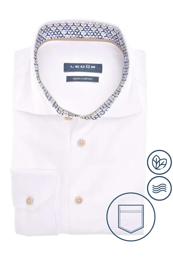 Ledȗb Modern Fit Overhemd wit, Effen Prijzen