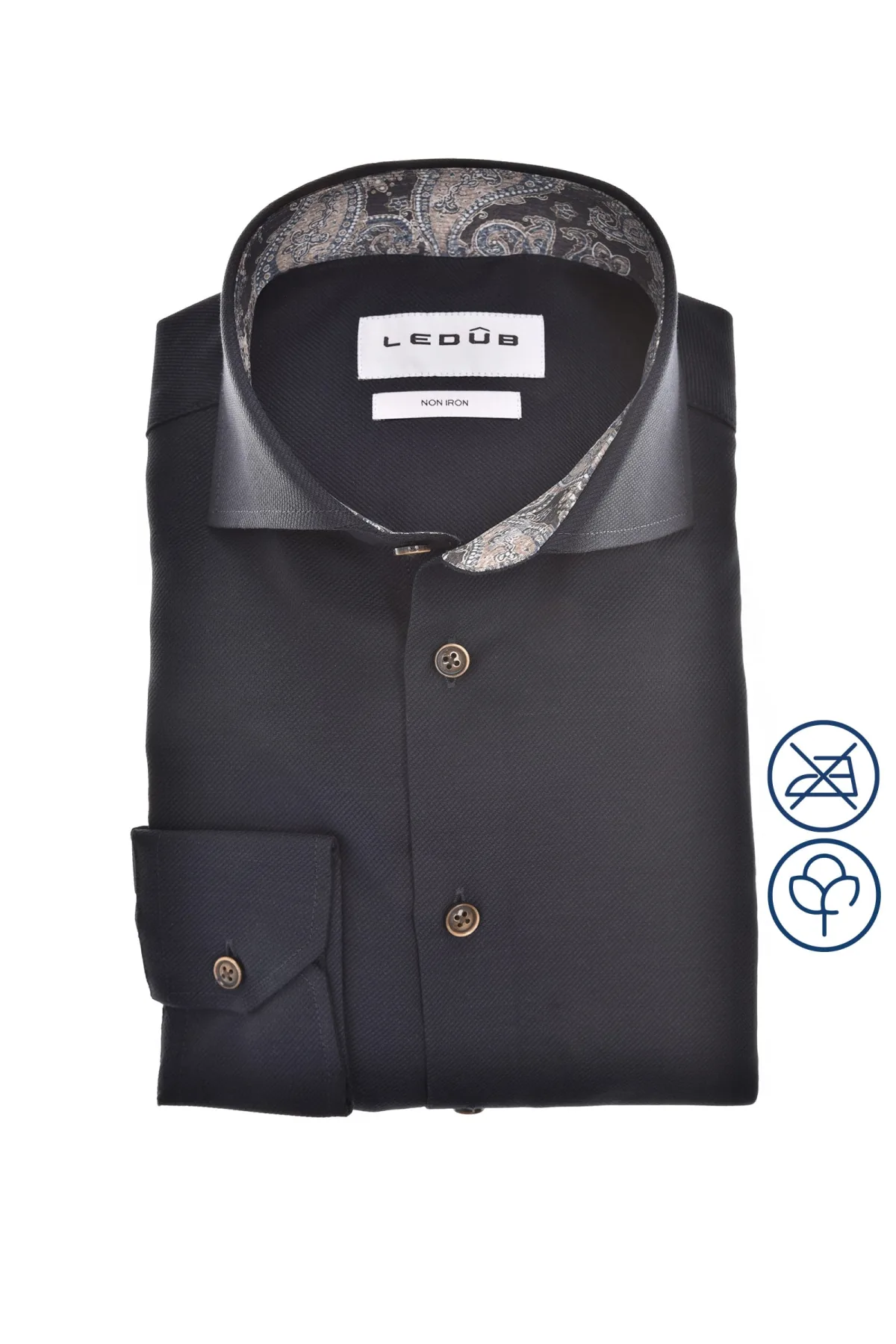 Ledub overhemd donkerblauw effen normale fit katoen strijkvrij