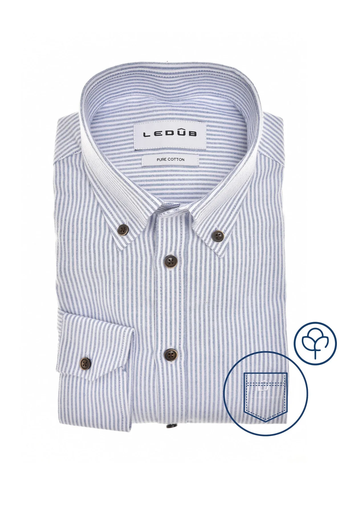 Ledub modern fit overhemd - popeline - donkerblauw gestreept -...