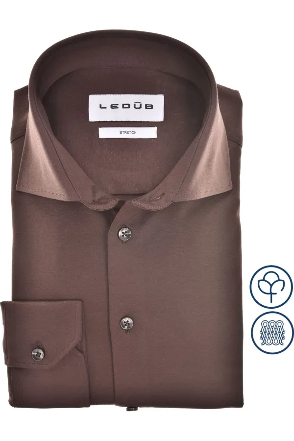 Ledȗb Overhemd bruin, Effen