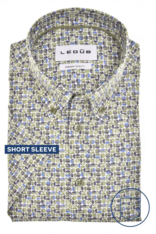- Bij bol.com kun je Ledub modern fit overhemd - korte mouw - popeline - blauw met groen en wit dessin - Strijkvriendelijk - Boord kopen voor slechts €84,90