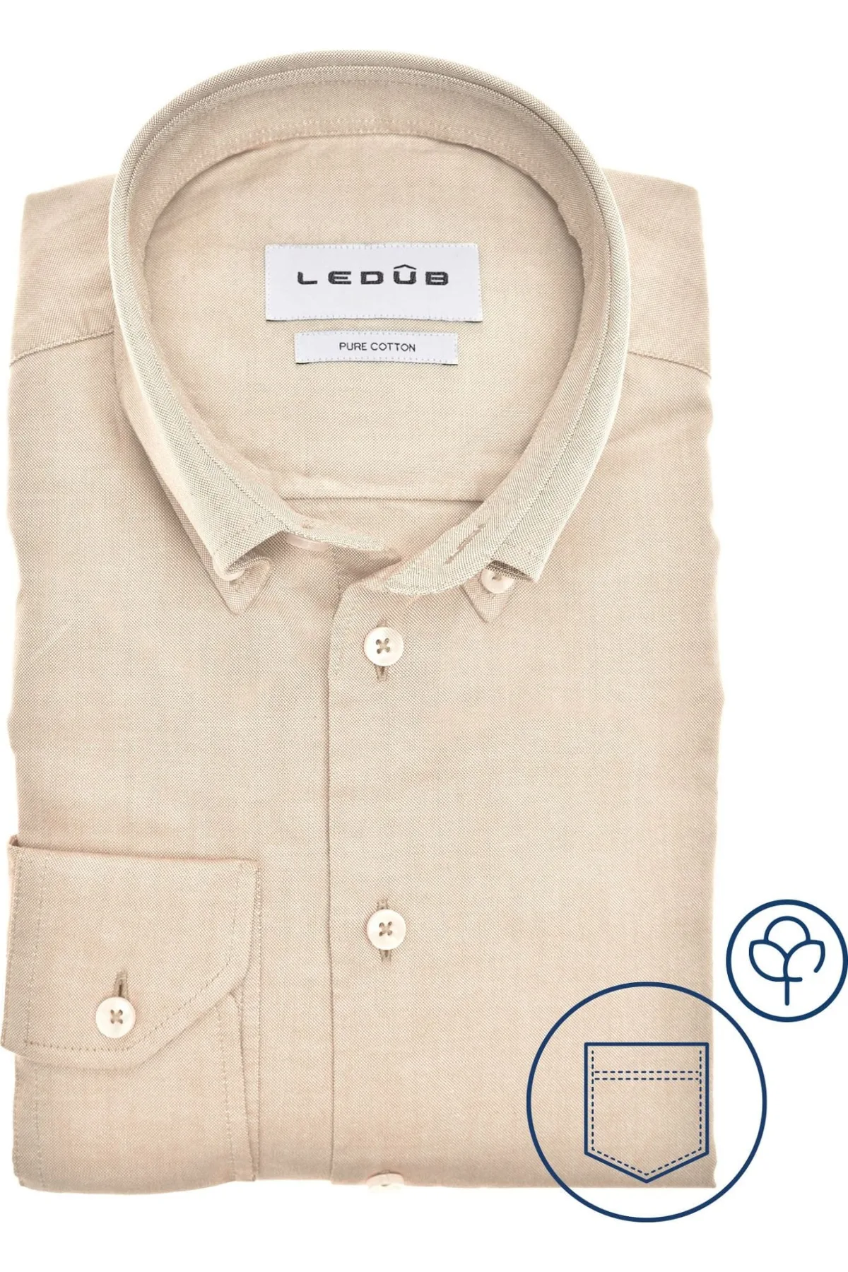 Ledub modern fit overhemd - popeline - lichtbruin - Strijkvriendelijk...