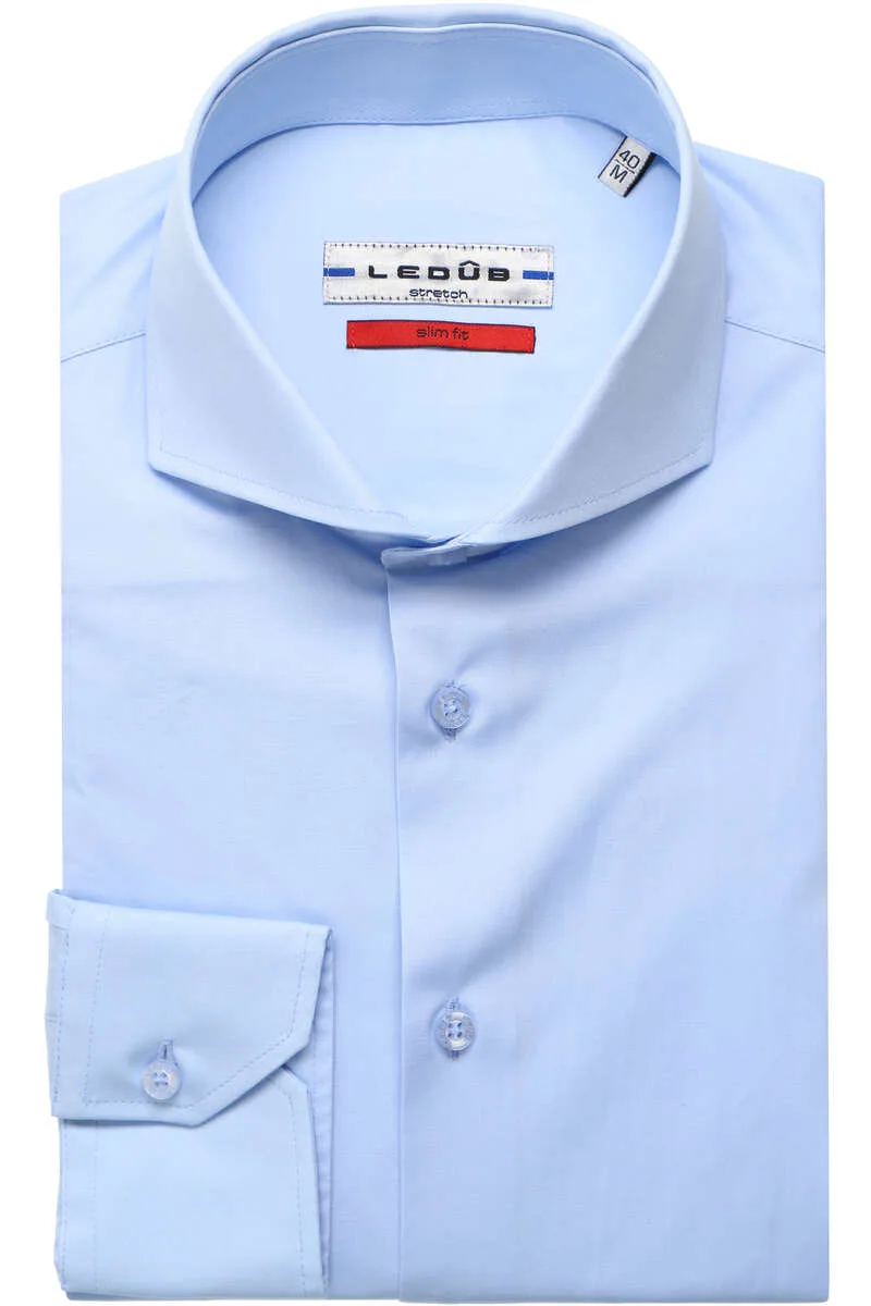 Ledub slim fit overhemd lichtblauw twill Strijkvriendelijk Boord