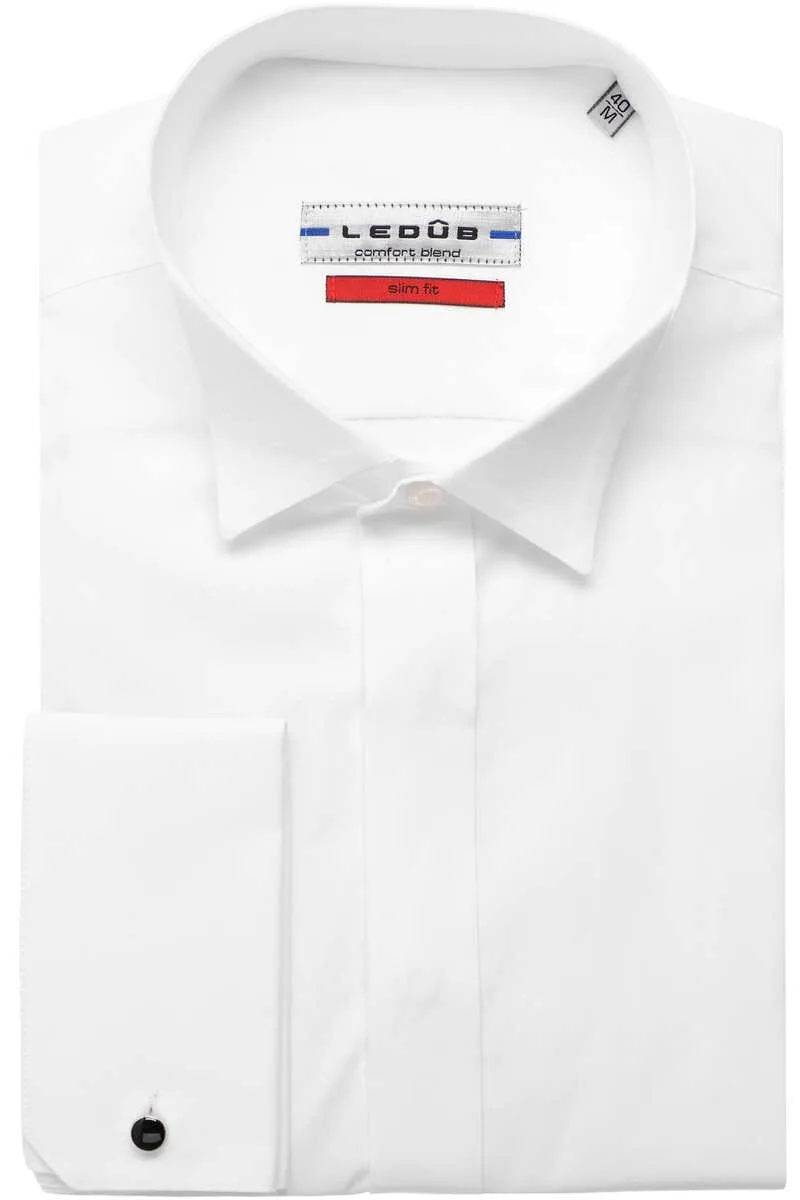 Ledub slim fit smoking overhemd dubbele manchet en wing kraag...
