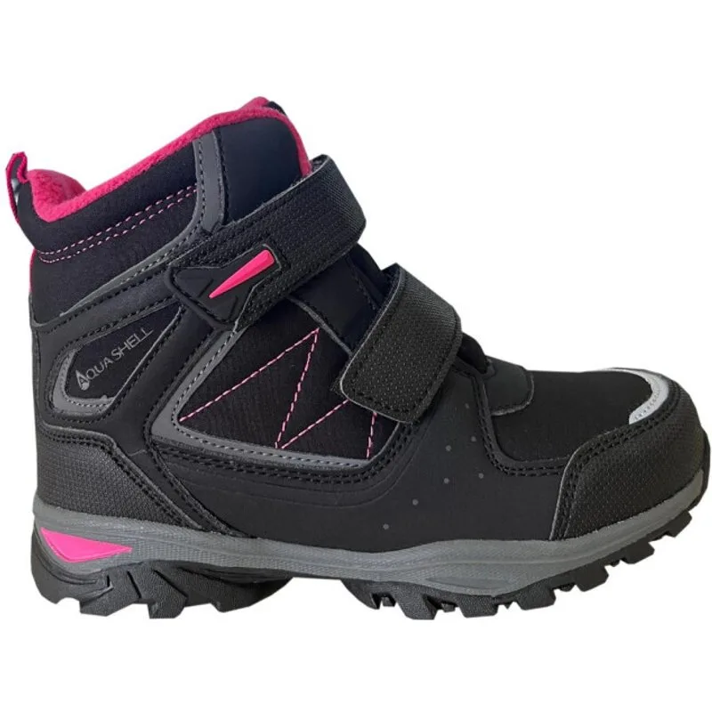 Bovenstuk: Synthetisch, Textiel. Voering: Contrast, Fleece. Buitenzool: Gegrepen, Rubber. Stoftechnologie: Vochttransport. Aqua Shell, Merkkraag, Schuimkraag, Treklipje. Vlakke. Snit: Enkelhoog. Ontwerp: Logo, eenvoudig. Teenstijl: Rond. Bevestiging: klittenband, overschuifbaar..