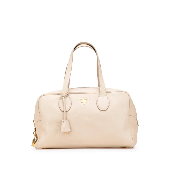 Omarm tijdloze elegantie en til je dagelijkse stijl naar een hoger niveau. Deze vintage Prada handtas voegt een vleugje luxe toe aan elke look. Gemaakt van hoogwaardig beige leer met goudkleurige accenten, combineert het sophistication met praktische bruikbaarheid. De bovenhandles zorgen voor comfortabel dragen. Geniet van het duurzame, onderhoudsarme ontwerp, perfect voor dagelijks gebruik. Deze tweedehands Vitello Daino schoudertas integreert naadloos in je levensstijl en biedt een mix van klassiek design en blijvende kwaliteit. Een stijlvolle en duurzame keuze. Afmetingen: 23 x 35 x 12 cm Staat beoordeling: B+ Staat informatie: Achterkant van het exterieur bevlekt met ander. Onderkant van het exterieur bevlekt met ander. Hoeken van het exterieur versleten. Versiering gekrast. Voorkant van het exterieur bevlekt met ander. Handvat van het exterieur gebroken. Handvat van het exterieur bevlekt met ander. Interne zak verkleurd. Interne zak bevlekt met penmarkering. Interne voering verkleurd. Interne voering bevlekt met ander. Bovenkant van het exterieur bevlekt met penmarkering. Rits roestig/gedoofd en gekrast.