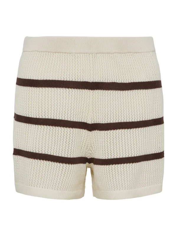 Design: Elastische taille/zoom, Rechte zoom; Materiaal: Knitwear; Motief: Gestreept; Details: Mesh; Extra's: Visnet brei, All-over patroon, Fully fashioned, Met textuur, Voelt zacht aan; Lengte: Kort/mini; Pasvorm: Regular; Taillehoogte: High waist