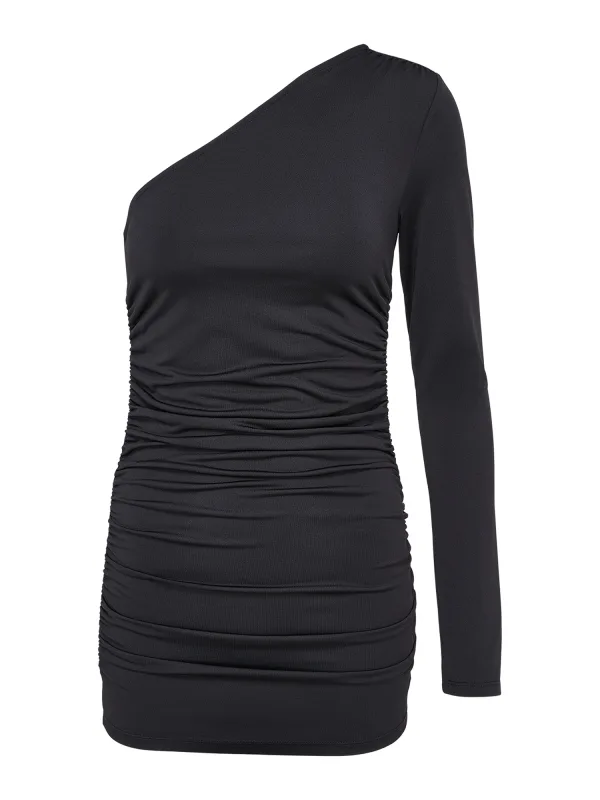 Design: Gevoerde zoom/rand, Rechte zoom; Motief: Effen; Details: Gedrapeerd; Extra's: Op staal naden, Lichte stof; Lengte: Kort/mini; Snit: Figuur omarmend; Pasvorm: Aansluitende pasvorm; Armlengte: Lange mouw