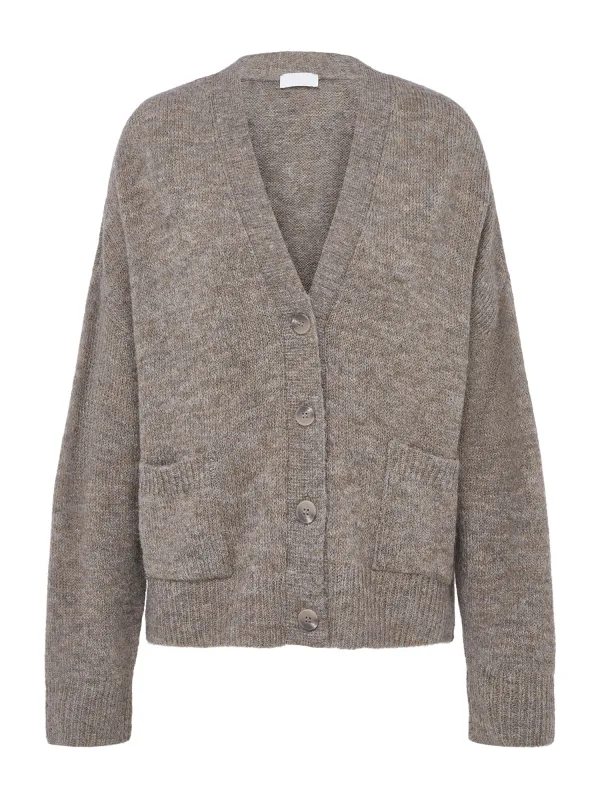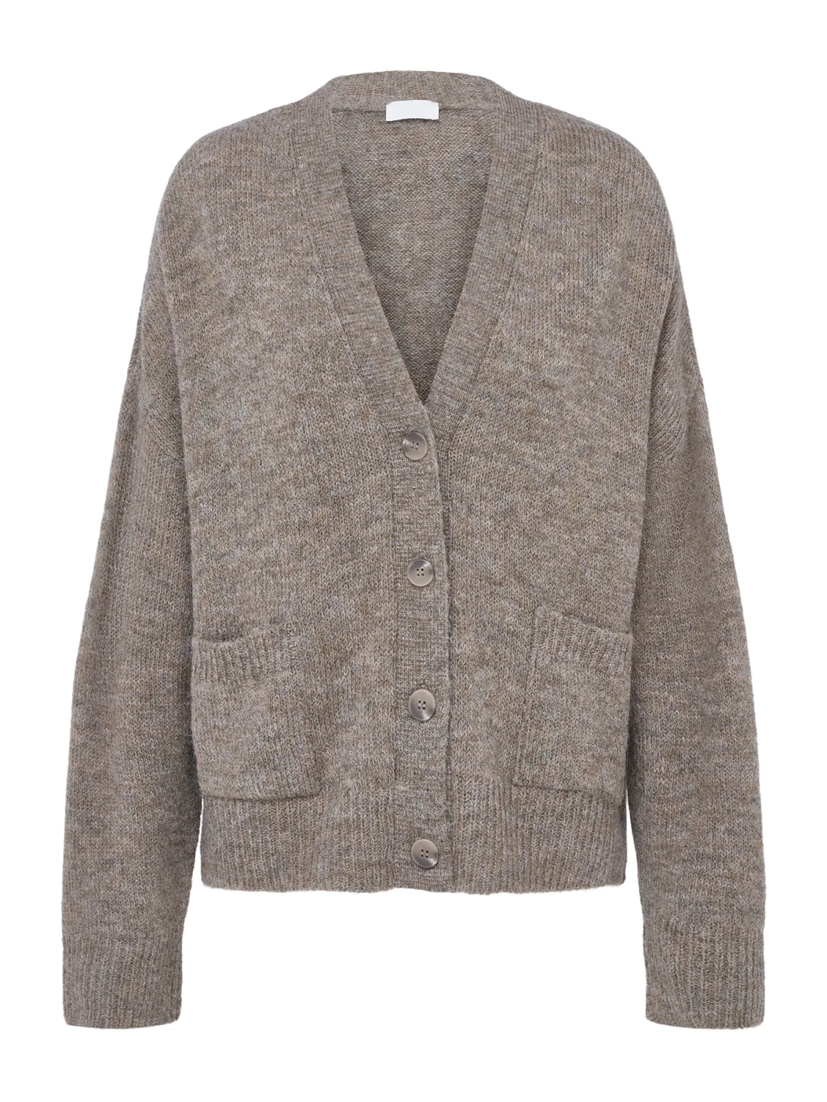 Design: Geribbelde kraag, Extra lange mouwen, Knop placket, Oversized, Geribd ceintuurtje, Overcut schouder, Opgezette zakken; Type sluiting: Knoopsluiting; Materiaal: Knitwear; Halstype: V-hals; Motief: Mélange; Extra's: Fully fashioned, Met textuur; Pasvorm: Wijde pasvorm; Armlengte: Lange mouw; Lengte: Normale lengte