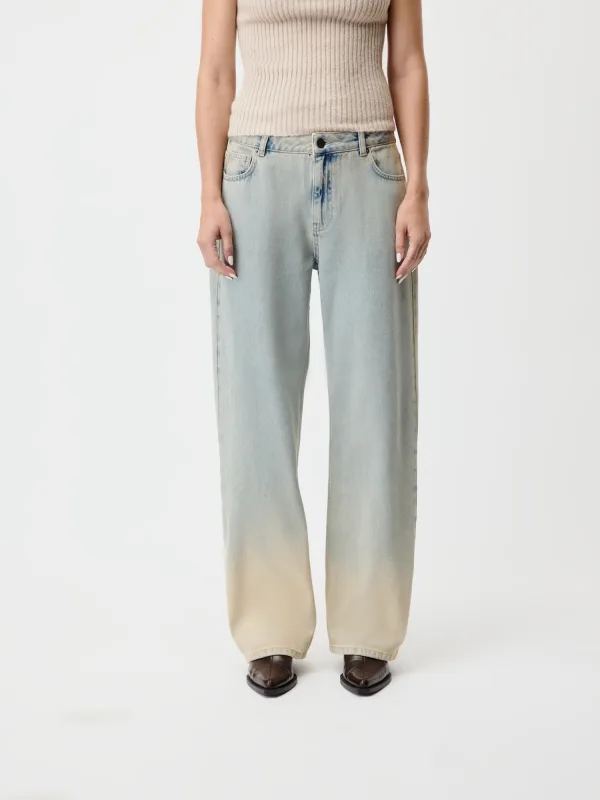 Design: Gevoerde zoom/rand, Ritssluiting, 5-pocket-style; Type sluiting: Ritssluiting; Materiaal: Denim; Motief: Kleurverloop; Extra's: Studs, Gewassen effect, Riemlussen; Lengte: Lang/maxi; Pasvorm: Loosefit; Taillehoogte: Mid waist