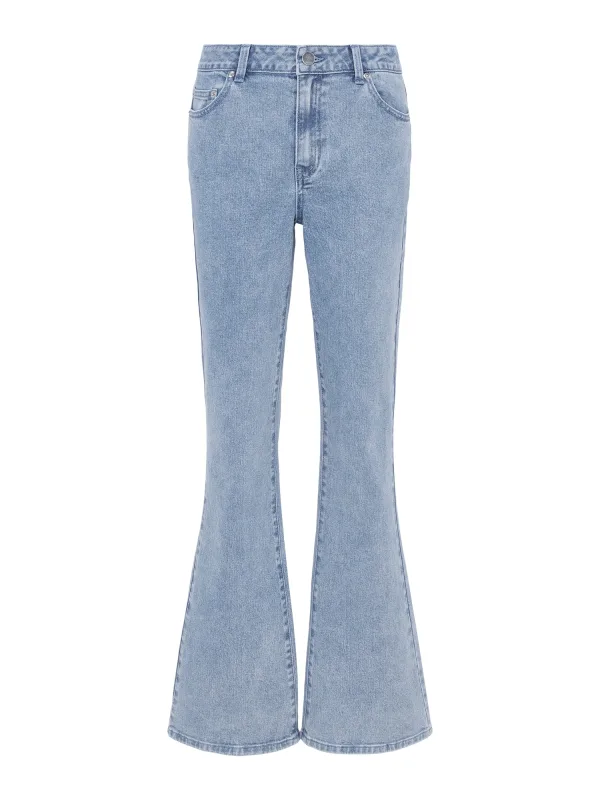 Design: Ritssluiting, 5-pocket-style; Type sluiting: Ritssluiting; Materiaal: Denim; Motief: Effen; Extra's: Stevige stof, Riemlussen; Wassing: Blauw denim; Lengte: Lang/maxi; Pasvorm: Flared; Taillehoogte: Mid waist