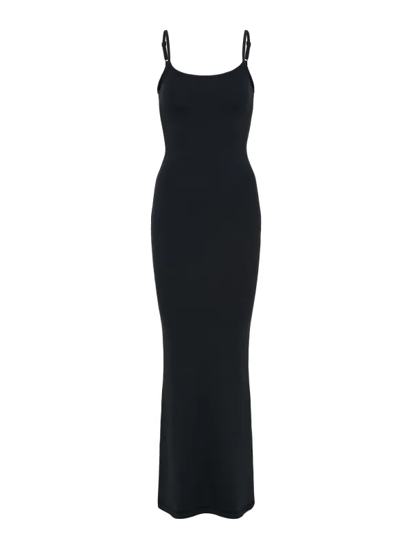 Design: Gevoerde zoom/rand, Ingelegde zoom/rand, Rechte zoom; Materiaal: Jersey; Halstype: Ronde hals; Motief: Effen; Soort bandjes: Spaghettibandjes; Extra's: Verstelbare bandjes, Op staal naden, Met textuur; Lengte: Lang/maxi; Snit: Figuur omarmend; Pasvorm: Slanke pasvorm; Armlengte: Mouwloos