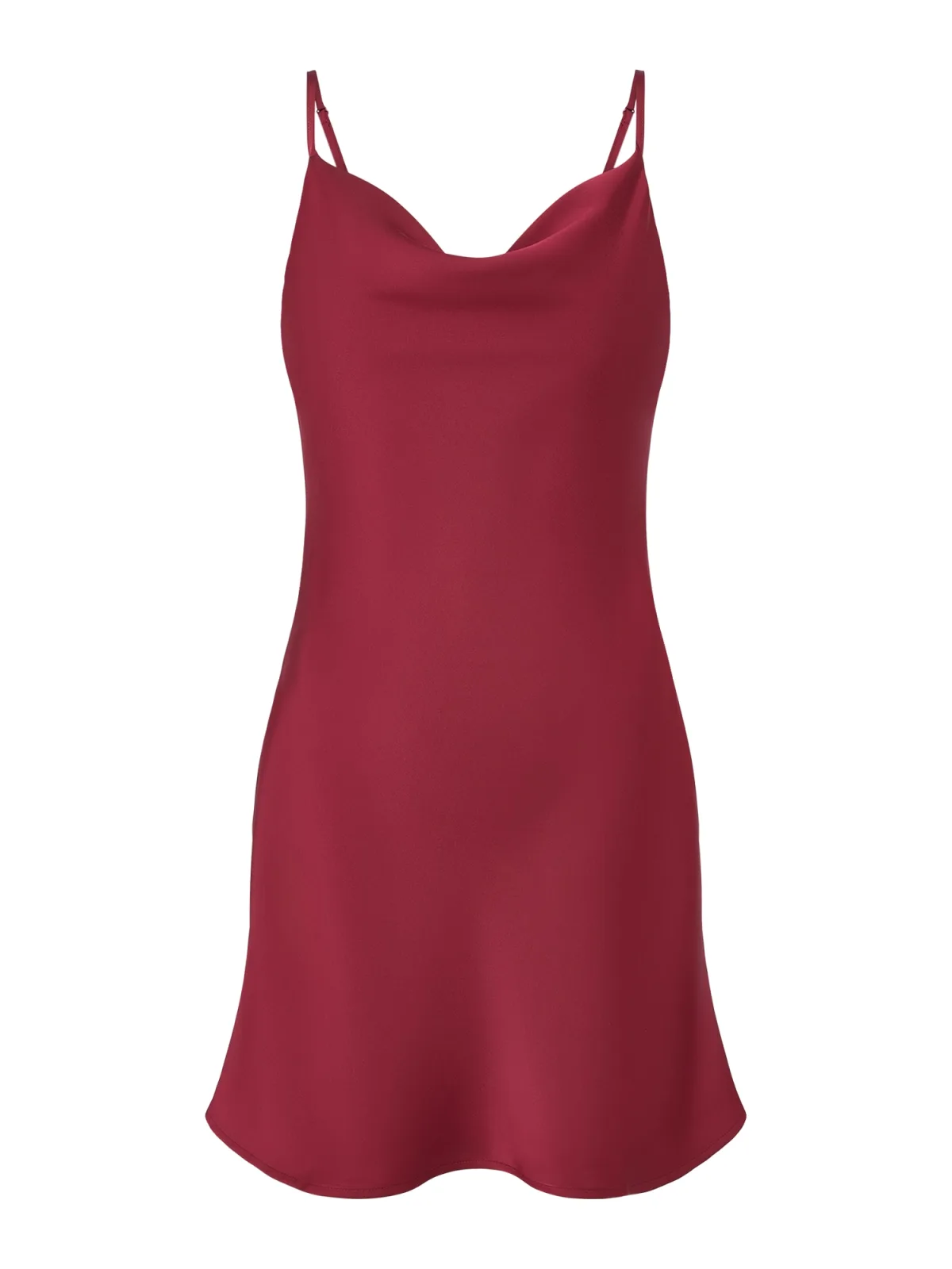 Design: Gevoerde zoom/rand, Rechte zoom; Materiaal: Gerecycled materiaal; Halstype: Watervalhals; Motief: Effen; Soort bandjes: Spaghettibandjes; Extra's: Verstelbare bandjes, Op staal naden, Gladde stof; Lengte: Kort/mini; Snit: Getailleerd; Pasvorm: Slanke pasvorm; Armlengte: Mouwloos