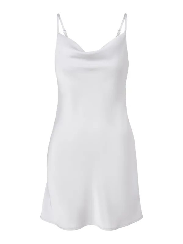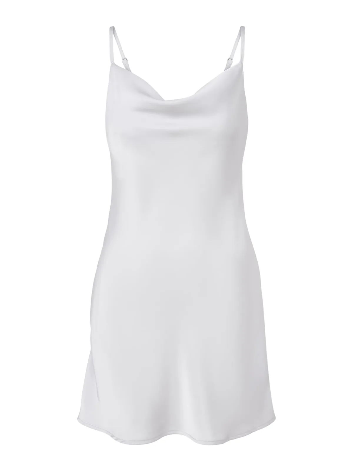 Design: Gevoerde zoom/rand, Diepe snit/decolleté; Materiaal: Gerecycled materiaal; Halstype: Watervalhals; Motief: Effen; Soort bandjes: Spaghettibandjes; Extra's: Verstelbare bandjes, Op staal naden, Gladde stof, Milieuvriendelijk geproduceerd; Lengte: Kort/mini; Snit: Getailleerd; Pasvorm: Slanke pasvorm; Armlengte: Mouwloos