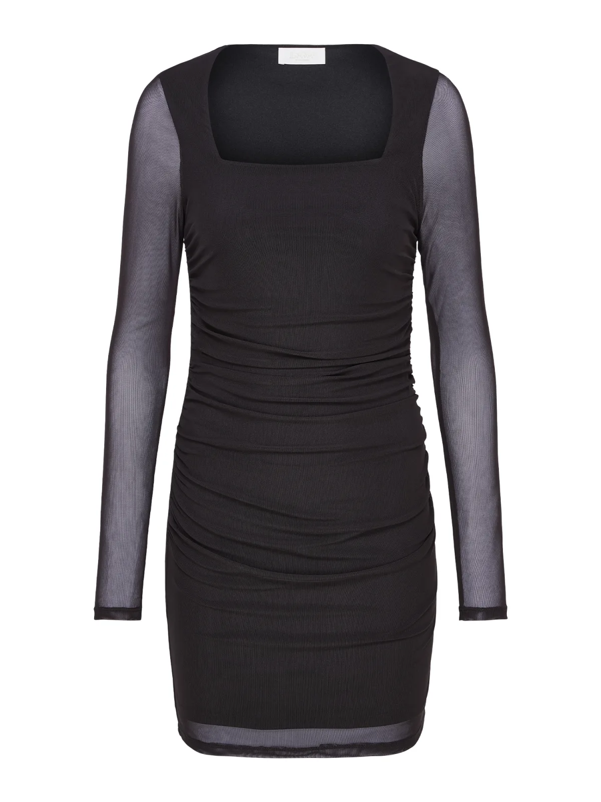 Design: Gevoerde zoom/rand, Rechte zoom; Halstype: Carréhals; Motief: Effen; Details: Gedrapeerd; Extra's: Licht transparant, Op staal naden; Lengte: Kort/mini; Snit: Figuur omarmend; Pasvorm: Slanke pasvorm; Armlengte: Lange mouw