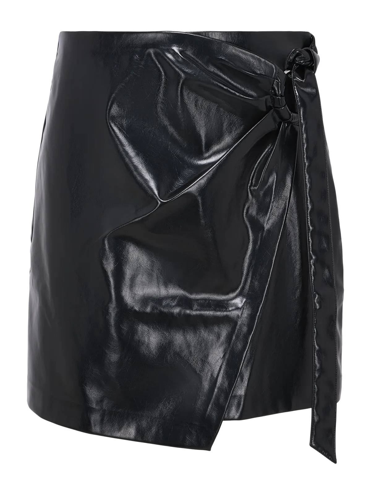 Design: Gevoerde zoom/rand, Rechte zoom, Tailleband, Ritszakken aan de zijkant; Type sluiting: Ritssluiting; Materiaal: Imitatieleder; Motief: Effen; Rokvorm: Wickelrock; Details: Wikkel design; Extra's: Glanzend, Op staal naden; Lengte: Kort/mini; Pasvorm: Normale pasvorm