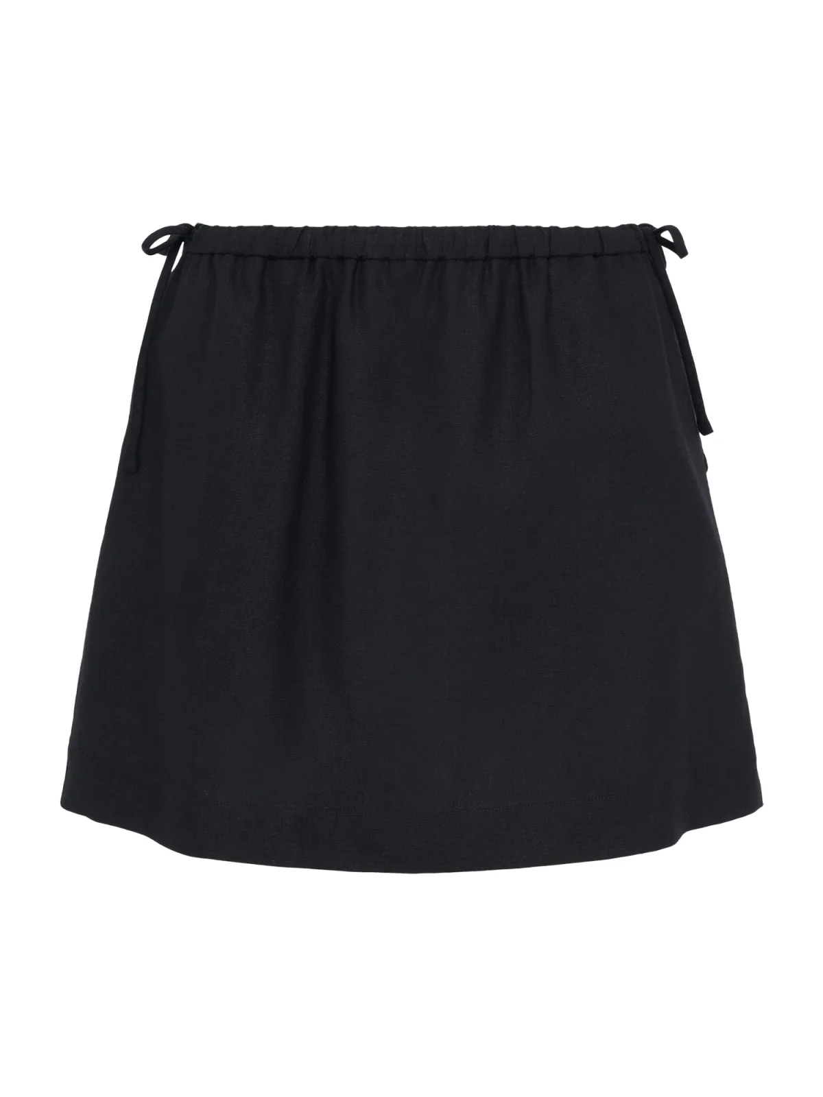 Design: Gevoerde zoom/rand, Om te knopen/binden; Materiaal: Linnen; Motief: Effen; Rokvorm: Minirok; Details: Gedrapeerd; Extra's: Trekkoord in de boord, Op staal naden; Lengte: Kort/mini; Pasvorm: Normale pasvorm